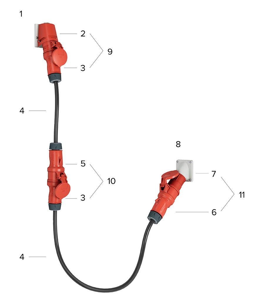 Våra stickkopplingar har beteckningar enligt standarden EN IEC 60309-1 (den internationella standarden för kontakter och uttag, ledningskopplingar och apparatstickkopplingar):