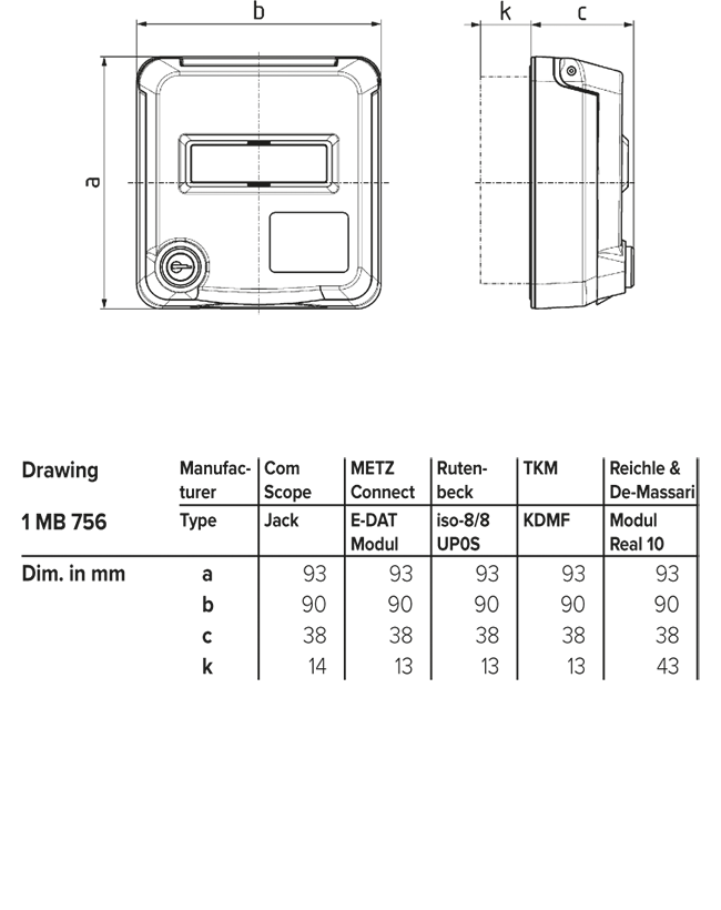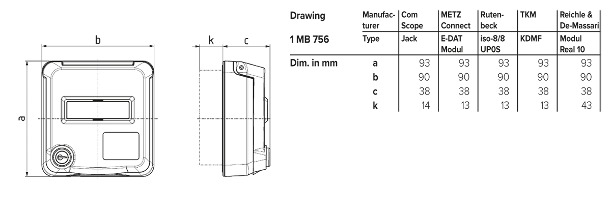 enkel, stämmer med alla Cepex infällda och panelmonterade 16 A och 32 A uttag, för installation av enstaka enheter och för vertikal kombination av uttag