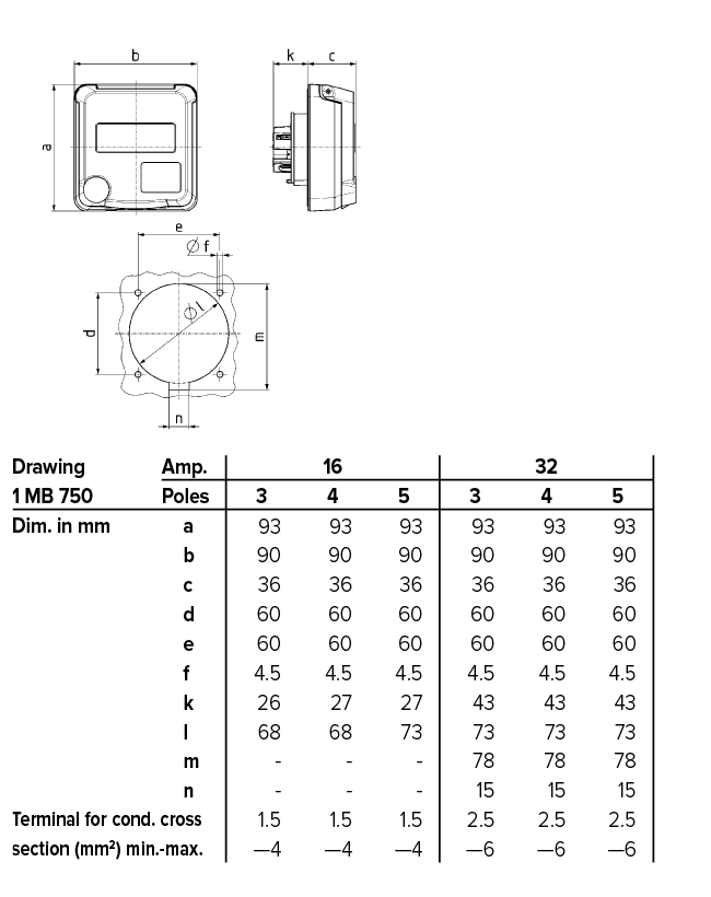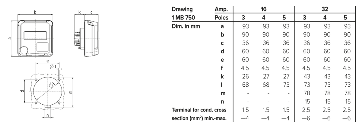 enkel, stämmer med alla Cepex infällda och panelmonterade 16 A och 32 A uttag, för installation av enstaka enheter och för vertikal kombination av uttag